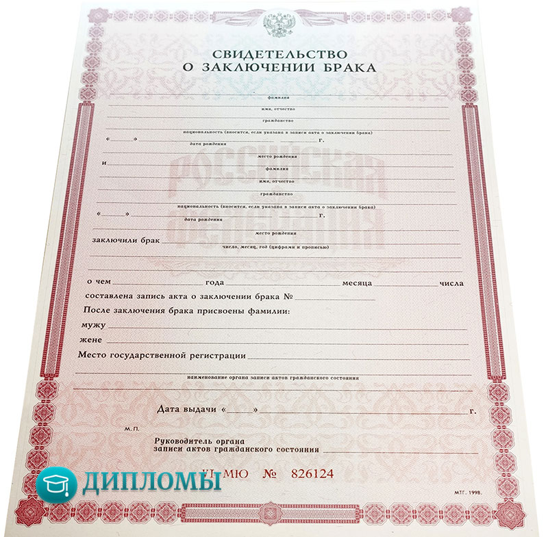Свидетельство о браке 16000 руб. Купить